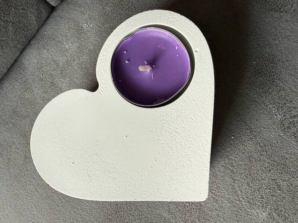 Ein Herz, das Licht schenkt: Unser handgegossener Teelichthalter in Herzform sorgt für eine warme, natürliche Atmosphäre.