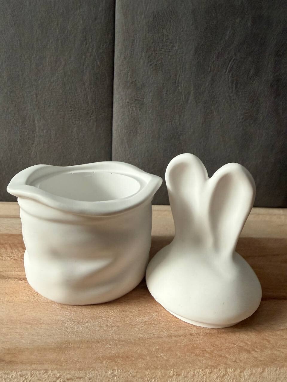 Diese entzückende Dose ist ein kleiner Zaubertrick aus Keramik: Ein eleganter, welliger Hut (wie ein Zylinder) dient als Behälter, während der Deckel ein neugieriger Hase mit langen, spitzen Ohren ist, der fröhlich herausschaut. Der Deckel sitzt sicher und leicht abnehmbar, das Innere bietet Platz für kleine Süßigkeiten, ein Geldgeschenk, Schmuck oder andere Klenigkeiten.